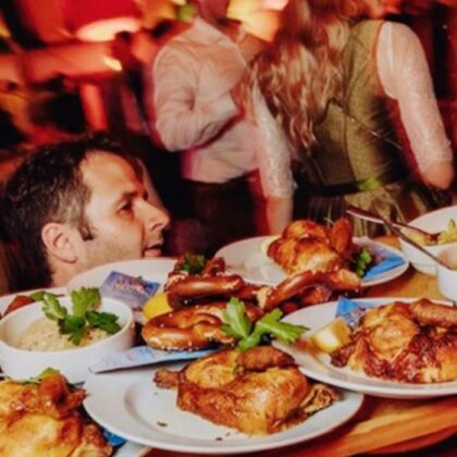 Unsere Speisekarte bietet alles, was das Herz begehrt: knusprige Bauernhendl, zarte Steaks aus der hauseigenen Wagyu-Rinderzucht und schmackhafte bayerische und vegetarische Schmankerl. Dazu servieren wir frisch gezapftes Spaten Frühlingswiesnbier, ausgewählte Weine und prickelnden Champagner.